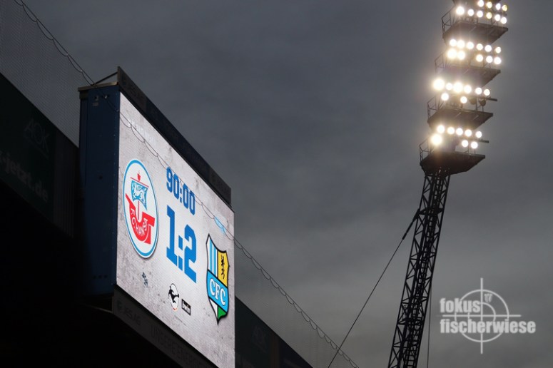 Beim FC Hansa Rostock gelingt dem Chemnitzer FC endlich der ersehnte 100. Erfolg in der vereinseigenen Drittliga-Geschichte. Vor 13.661 Zuschauern im Rostocker Ostseestadion konnten nach 90 Minuten lediglich die rund 200 mitgereisten Chemnitzer über den wichtigen 2:1-Erfolg (1:1) jubeln.