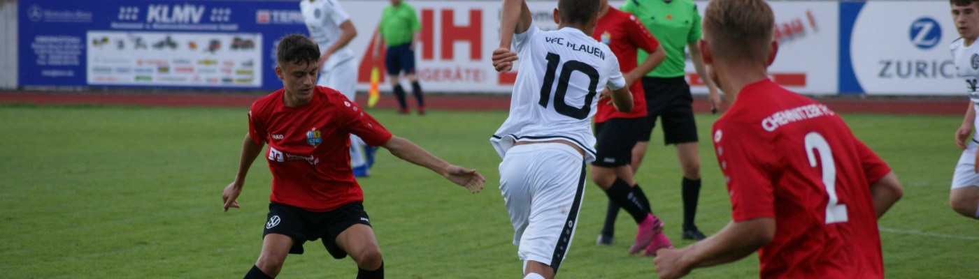 Die B-Junioren des Chemnitzer FC haben in einem Testspiel bei der U19 des VFC Plauen eine deftige Klatsche kassiert. Beim Landesligisten unterlagen die himmelblauen Junioren gleich mit 1:6 (1:2).