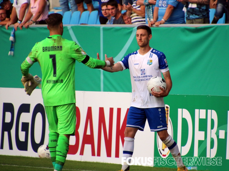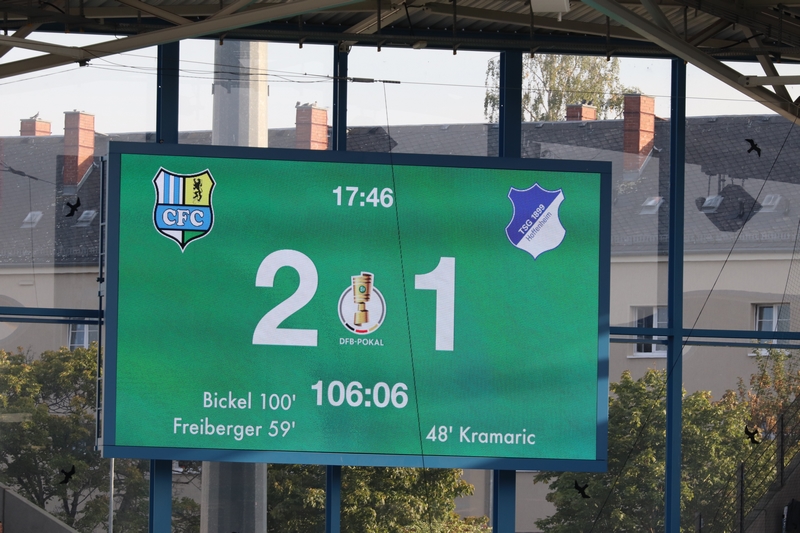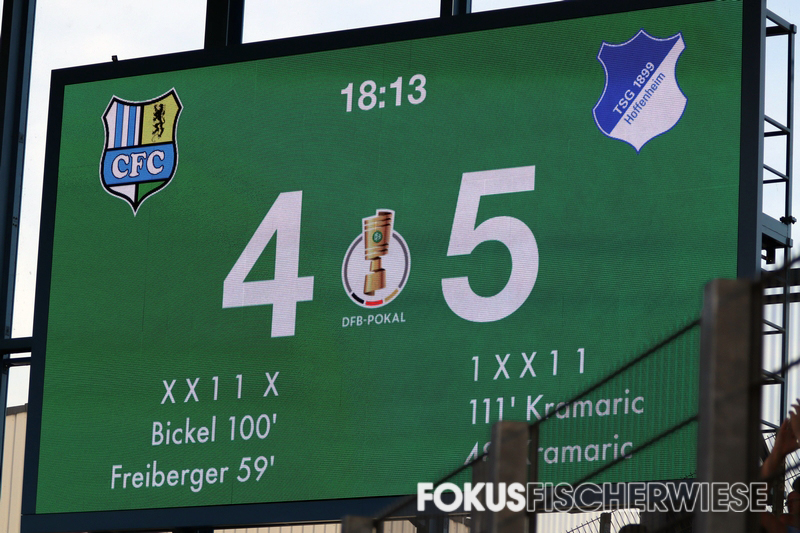 Der Chemnitzer FC ist in der 1. Runde des DFB-Pokals nur knapp an einer Überraschung gescheitert. Mit einer kämpferisch starken Leistung mussten sich die Himmelblauen dem Bundesligisten aus Hoffenheim mit 4:5 nach Elfmeterschießen beugen.