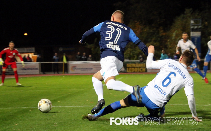 Im sechsten Anlauf kann der Chemnitzer FC in dieser Saison erstmals auf fremden Rasen gewinnen. Beim Schlusslicht aus Bischofswerda gewannen die Himmelblauen mit 3:0 (1:0).