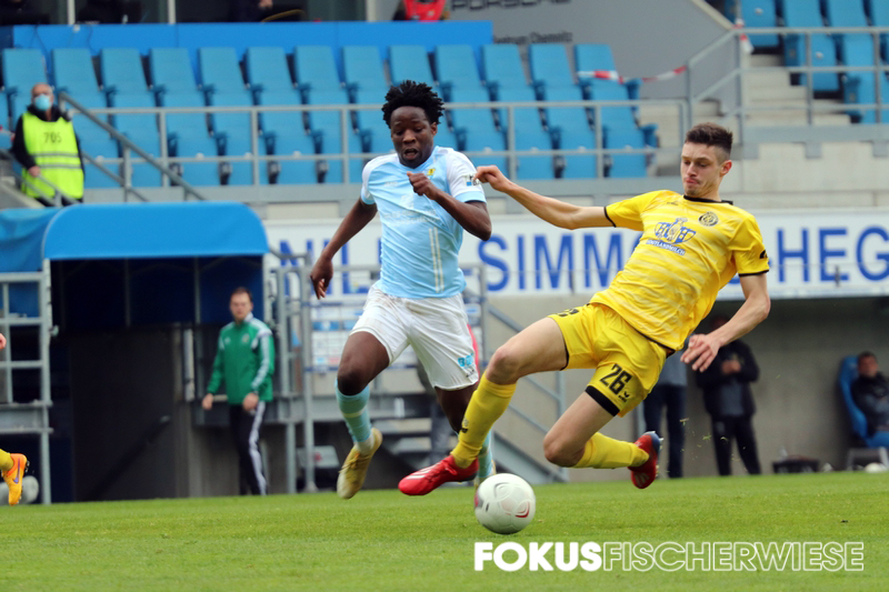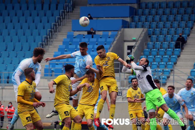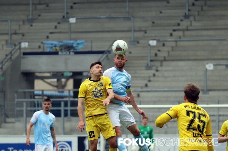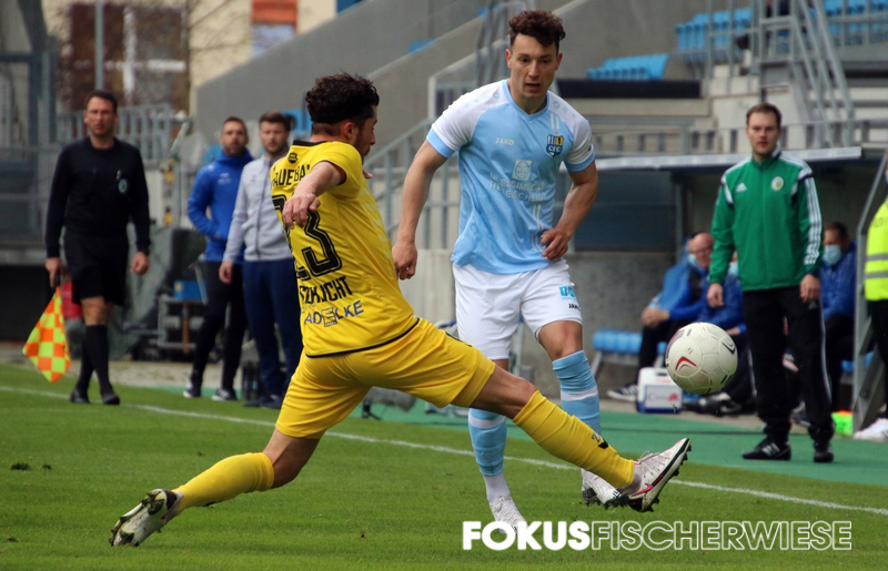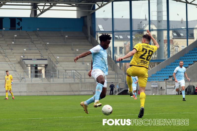 Im dem coronabedingt wieder leeren Stadion an der Gellertstraße gab es in der ersten Hälfte wenig Aufregendes zu sehen. Die erste gute Chance für Auerbach hatte VfB-Lebensversicherung Marc Zimmermann, der auf der rechten Seite am Kasten von Jakubov vorbeizielte. Zimmermann musste dann nach 20 Minuten verletzt raus, eine Schwächung für die Vogtländer. Die erste Chance für den Club hatte Neu-Kapitän Müller, als er von der rechten Seite am Tor von Stefan Schmidt vorbeischoss. Kurz vor der Pause klingelte es dann im VfB-Kasten. Köhler hatte einen Freistoß von der rechten Seite nach innen gebracht, wo am langen Pfosten Abwehrspieler Aigner stand und zur himmelblauen Führung einnickte. Nach der Pause hätte der Club schnell auf 2:0 stellen können, doch Kurt, der sich schön durchgesetzt hatte, spielte seinen Querpass zu ungenau. In der 62. Minute hatte Knechtel dann ebenfalls das 2:0 auf den Fuß, als er eine Direktabnahme nur knapp am rechten Pfosten vorbeisetzte. Da der Club seinen Chancen nicht nutzen konnte und insbesondere die Konter nur sehr schlampig ausspielte, blieb der VfB Auerbach bis zum Schluss im Spiel. Da die Vogtländer aber vor dem Tor zu harmlos blieben, brachten die Himmelblauen die Partie schlussendlich ohne große Probleme ins Ziel. Im Halbfinale des Sachsenpokal wartet nun am 12. Mai der FSV Zwickau, der im Parallelspiel die Chemiker mit 1:0 bezwang. (CFC-Fanpage)