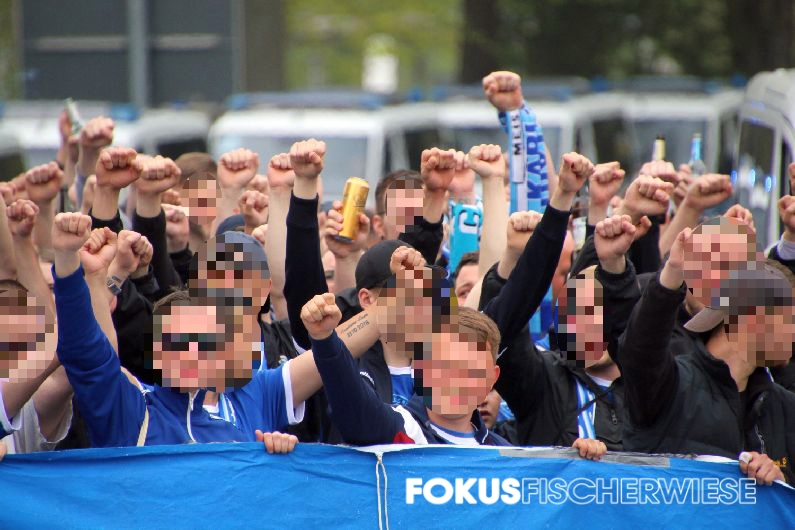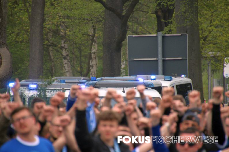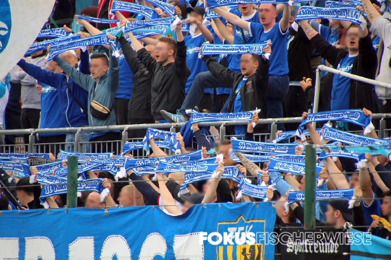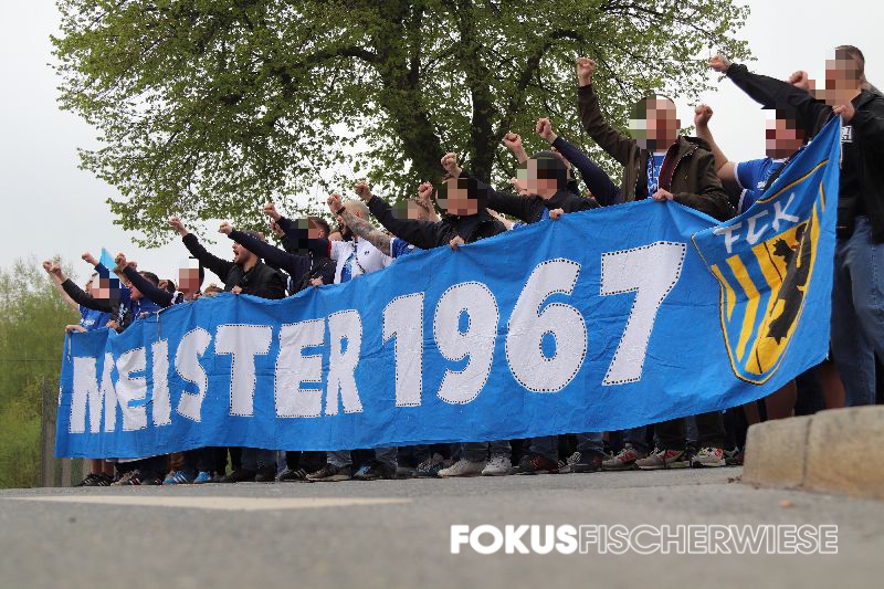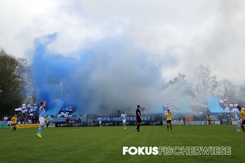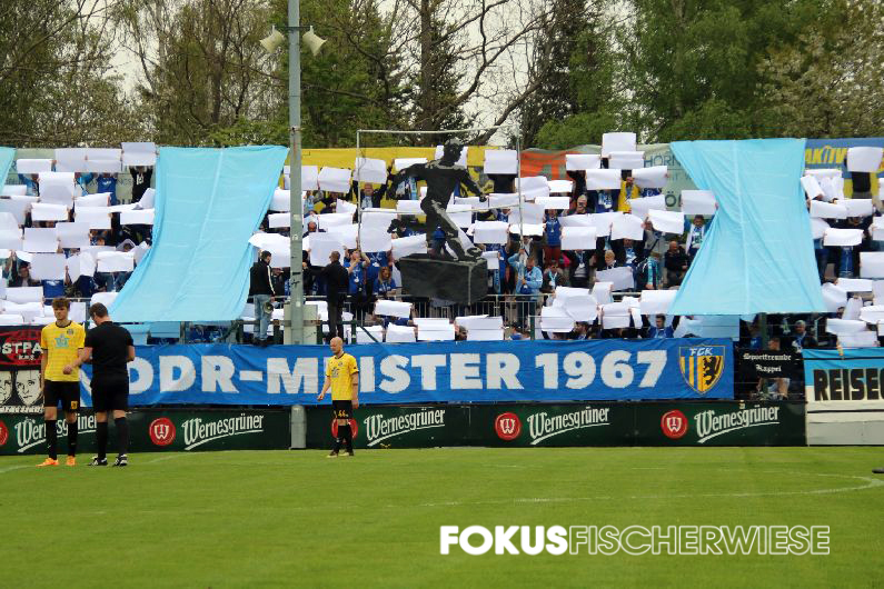 Während die rund 500 angereisten CFC-Fans per Choreo an den Gewinn der Deutschen Meisterschaft vor 55 Jahren erinnerten, trafen Pagliuca (6.), Freiberger (11., 74.) und Brügmann (35.) für die Himmelblauen. (Zum Spielbericht auf der Fanpage)