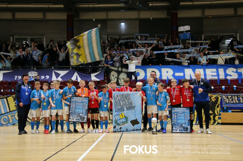 Der Pokal des Klinikum Cups bleibt in himmelblauen Händen. Bei der Auflage 2024 sicherte sich das Team Blau des Chemnitzer FC vor rund 800 Zuschauern den Titel.