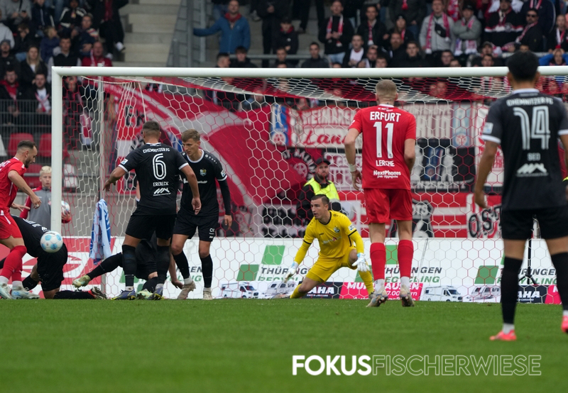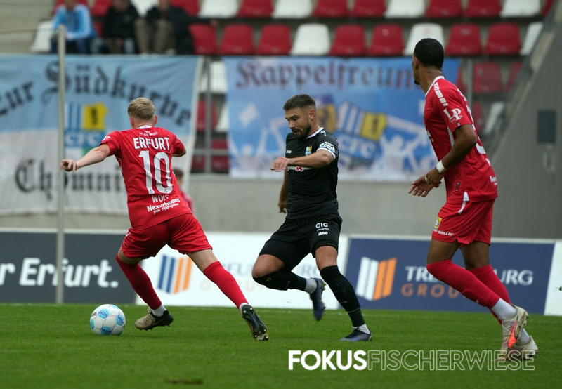 Der Chemnitzer FC hat zum vierten Mal in Folge auswärts Zählbares eingefahren – nach dem Greifswalder FC und dem BFC Dynamo konnten die Himmelblauen nun auch dem FC Rot-Weiß Erfurt einen Zähler abtrotzen.