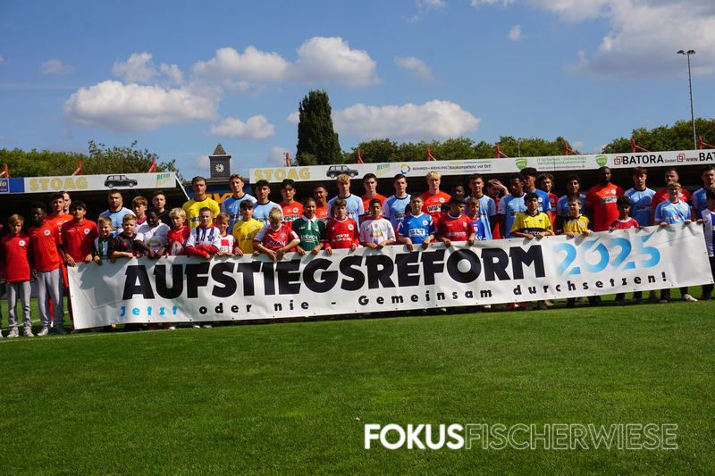 Das Ergebnis bei diesem Freundschaftsspiel war jedoch Nebensache, stand doch das Anliegen der Aufstiegsreform-Initiative im Mittelpunkt. Hier war die Liste der unterstützenden Clubs erst in dieser Woche auf 45 angewachsen, nachdem die beiden Traditionsvereine 1860 München und VfL Osnabrück, sowie der letzte Ligagegner BFC Preussen, dazugestoßen waren. (Zum Bericht auf der Fanpage)