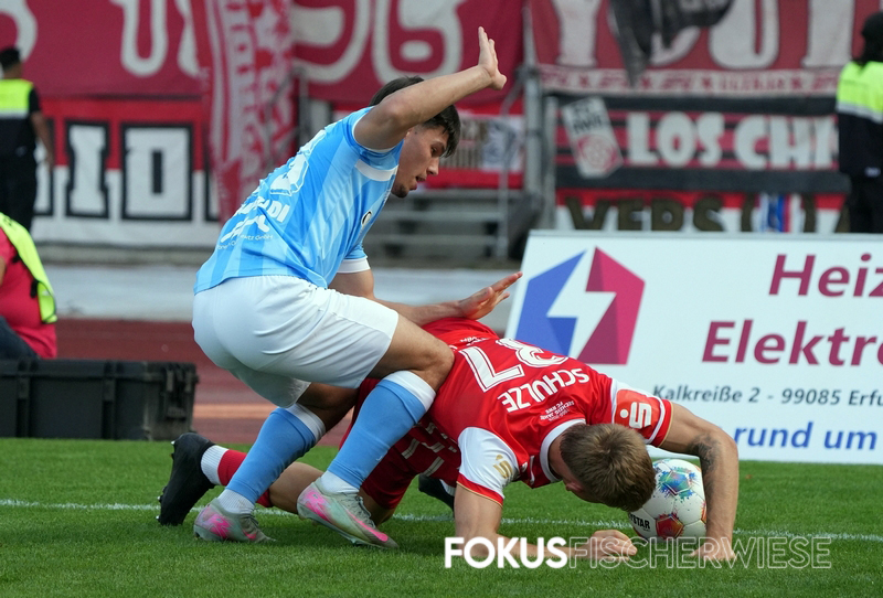 Mit einem 2:2 kehrt der Chemnitzer FC zum Abschluss der englischen Woche aus Erfurt zurück. Baumgart und Alberico retteten den Himmelblauen nach einem 0:2-Rückstand noch den Zähler.