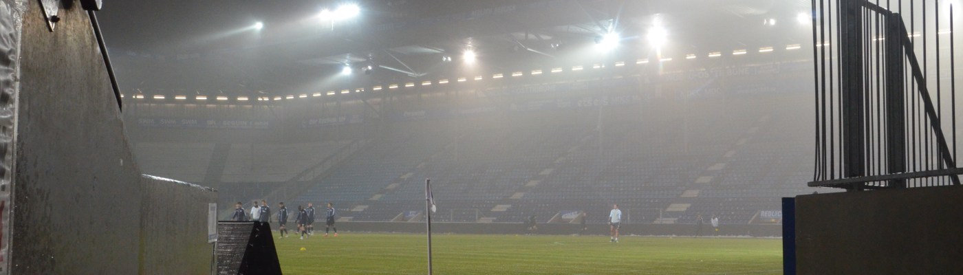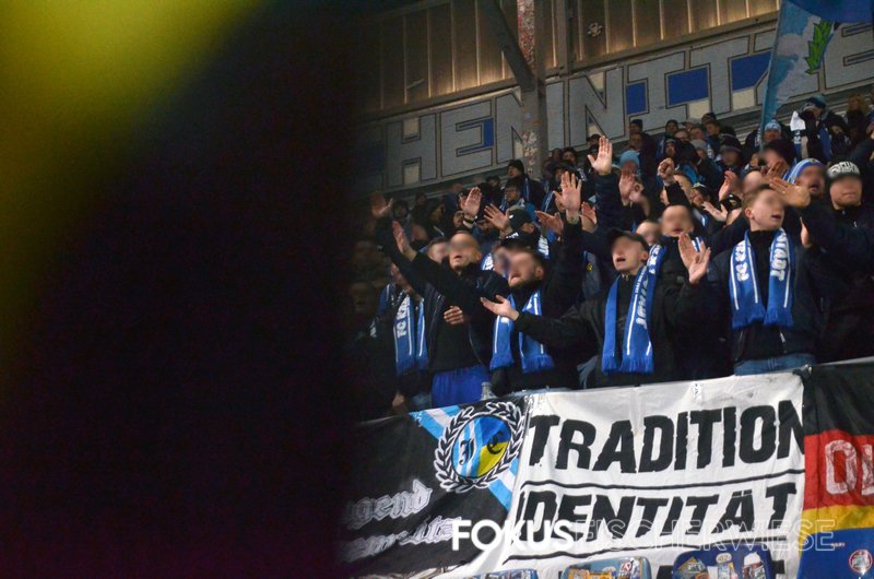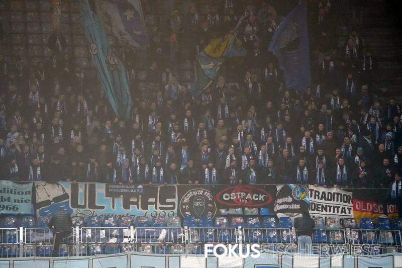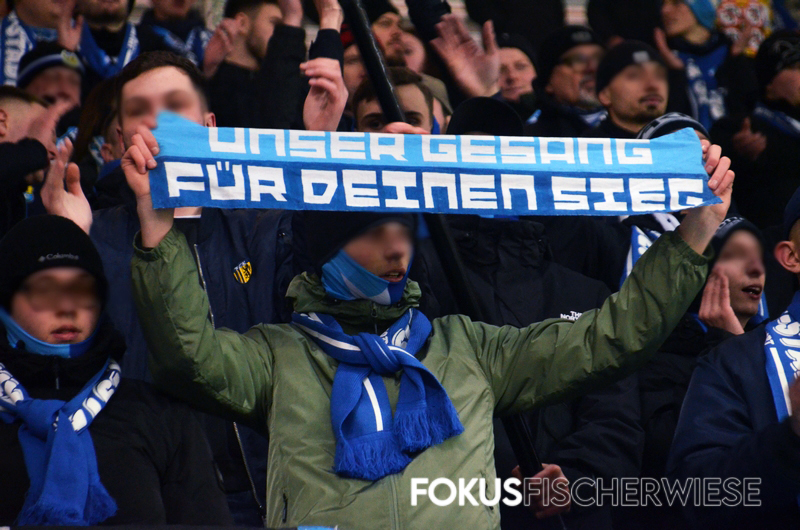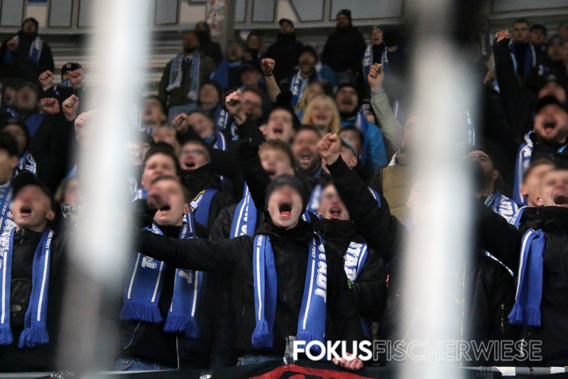 Rund 400 Himmelblaue hatten im ansonsten leeren Stadion naturgemäß ein Heimspiel und zeigten auch zu dieser Partie eine kleine Aktion zum 60. Vereinsjubiläum.
