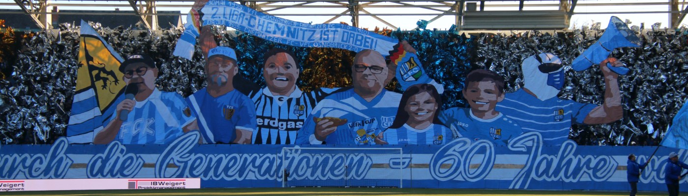 60 Jahre Chemnitzer FC und es wird eine unvergessliche Feier. Nicht nur – aber auch – dank der tollen Choreo der Südkurve, sondern auch, weil die Mannschaft den Spitzenreiter aus Probstheida mit 3:0 abfertigte.