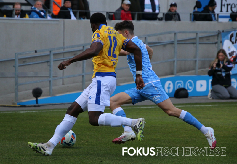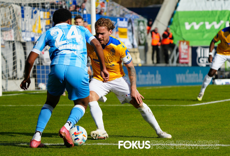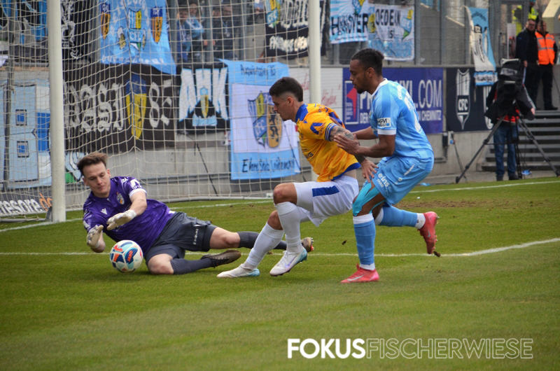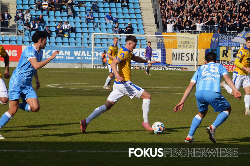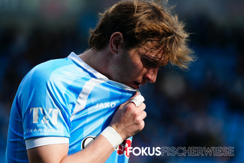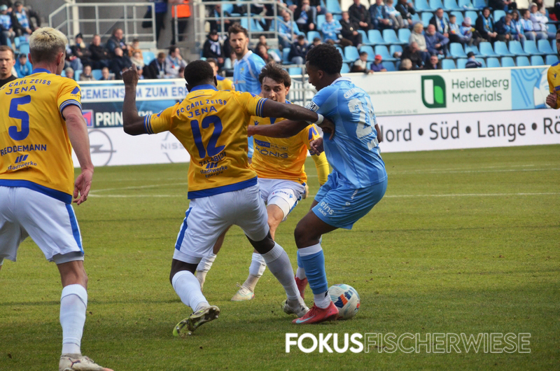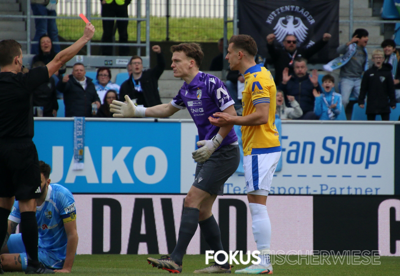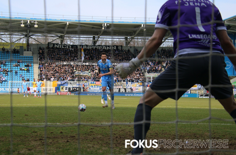 Die entscheidende – und umstrittenste – Szene des Spiels geschah kurz vor der Pause, als Bozic einen Elfmeter rausholte und die Jenaer plötzlich zudem einen Mann weniger auf dem Platz hatten. (Zum Bericht auf der Fanpage)